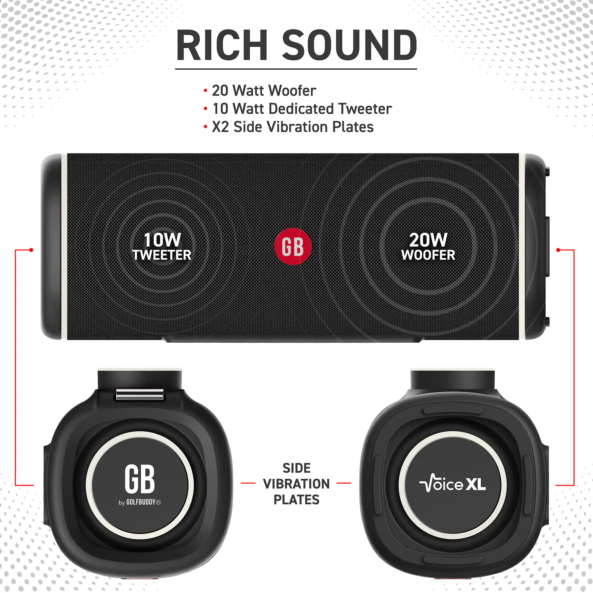Golf Mode or Life Mode - You Choose: Not just a golf gadget! The VOICE XL is your everyday music companion. Switch to Life Mode and turn your day-to-day into a melodious journey with our state-of-the-art Bluetooth speaker.